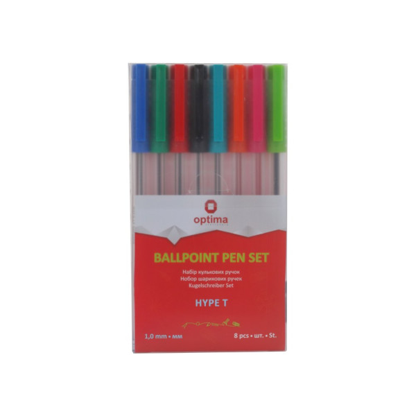 Набір ручок кулькових OPTIMA HYPE T 1,0 мм 8 кол